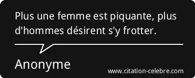 Plus une femme est piquante, plus d'hommes désirent s'y frotter.