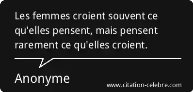 Les femmes croient souvent ce qu'elles pensent, mais pensent rarement ce qu'elles croient.