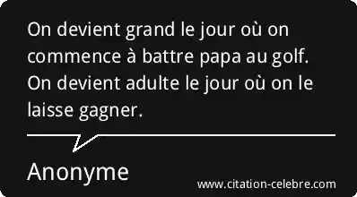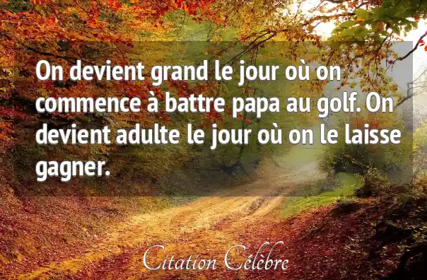 On devient grand le jour où on commence à battre papa au golf. On devient adulte le jour où on le laisse gagner.