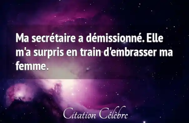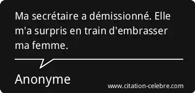 Ma secrétaire a démissionné. Elle m'a surpris en train d'embrasser ma femme.
