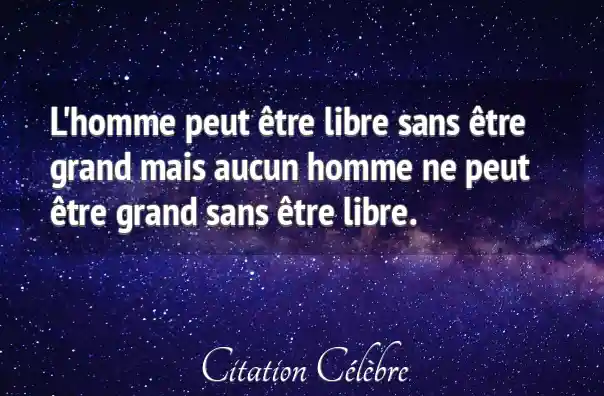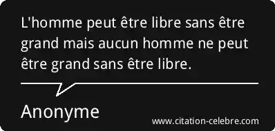 L'homme peut être libre sans être grand mais aucun homme ne peut être grand sans être libre.