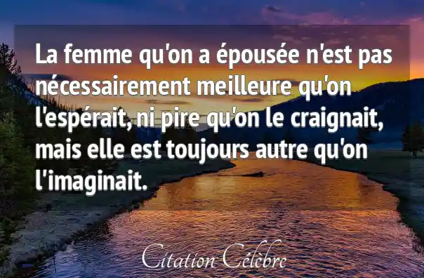 La femme qu'on a épousée n'est pas nécessairement meilleure qu'on l'espérait, ni pire qu'on le craignait, mais elle est toujours autre qu'on l'imaginait.