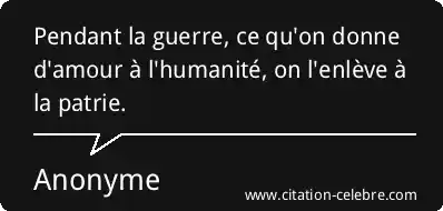 Pendant la guerre, ce qu'on donne d'amour à l'humanité, on l'enlève à la patrie.