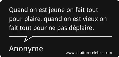 Quand on est jeune on fait tout pour plaire, quand on est vieux on fait tout pour ne pas déplaire.