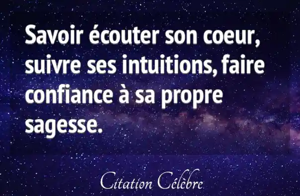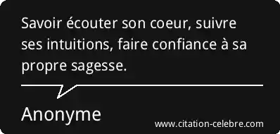 Savoir écouter son coeur, suivre ses intuitions, faire confiance à sa propre sagesse.