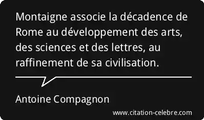 Citation Antoine Compagnon developpement : Montaigne associe la décadence de Rome au développement des arts,...