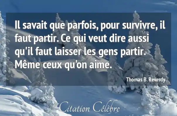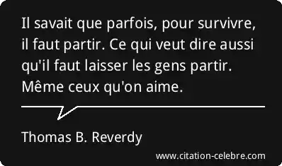 Il savait que parfois, pour survivre, il faut partir. Ce qui veut dire aussi qu'il faut laisser les gens partir. Même ceux qu'on aime.