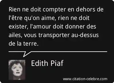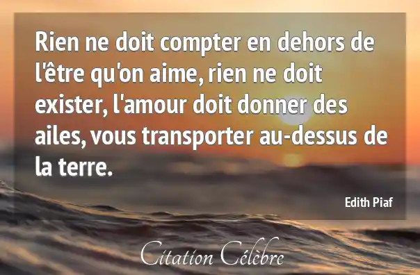 Rien ne doit compter en dehors de l'être qu'on aime, rien ne doit exister, l'amour doit donner des ailes, vous transporter au-dessus de la terre.