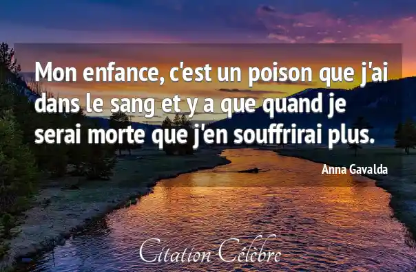 Mon enfance, c'est un poison que j'ai dans le sang et y a que quand je serai morte que j'en souffrirai plus.