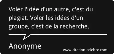 Voler l'idée d'un autre, c'est du plagiat. Voler les idées d'un groupe, c'est de la recherche.
