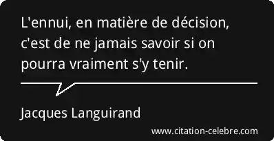 L'ennui, en matière de décision, c'est de ne jamais savoir si on pourra vraiment s'y tenir.