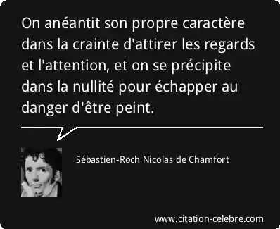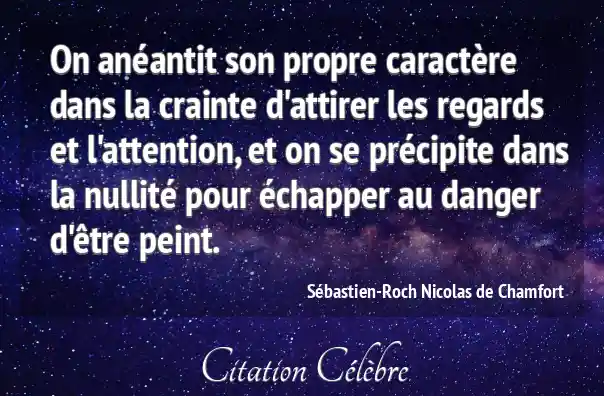 On anéantit son propre caractère dans la crainte d'attirer les regards et l'attention, et on se précipite dans la nullité pour échapper au danger d'être peint.