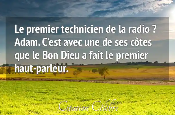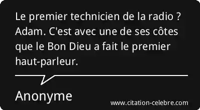 Le premier technicien de la radio ? Adam. C'est avec une de ses côtes que le Bon Dieu a fait le premier haut-parleur.