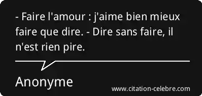 Citation Anonyme amour : - Faire l'amour : j'aime bien mieux faire que dire....