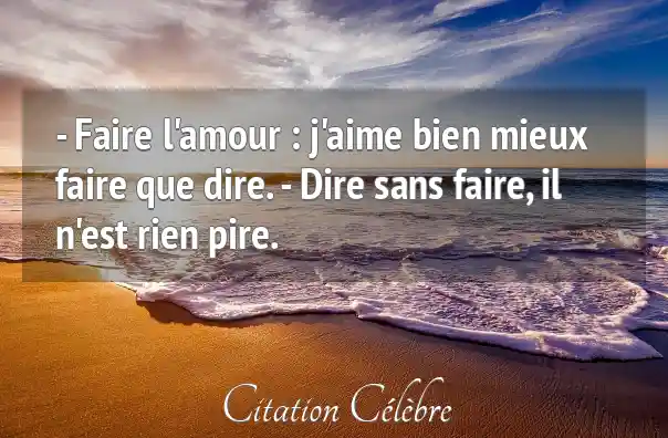 - Faire l'amour : j'aime bien mieux faire que dire. - Dire sans faire, il n'est rien pire.