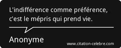 L'indifférence comme préférence, c'est le mépris qui prend vie.