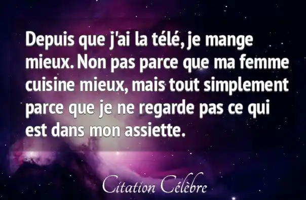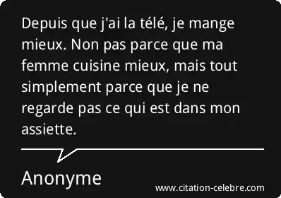 Depuis que j'ai la télé, je mange mieux. Non pas parce que ma femme cuisine mieux, mais tout simplement parce que je ne regarde pas ce qui est dans mon assiette.