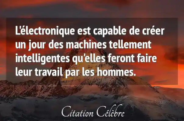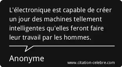 L'électronique est capable de créer un jour des machines tellement intelligentes qu'elles feront faire leur travail par les hommes.