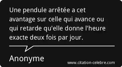 Une pendule arrêtée a cet avantage sur celle qui avance ou qui retarde qu'elle donne l'heure exacte deux fois par jour.