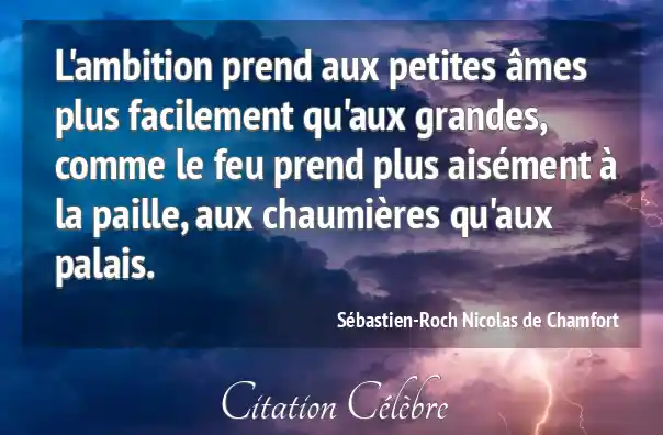 L'ambition prend aux petites âmes plus aisément qu'aux grandes, comme le feu prend plus aisément à la paille, aux chaumières qu'aux palais.