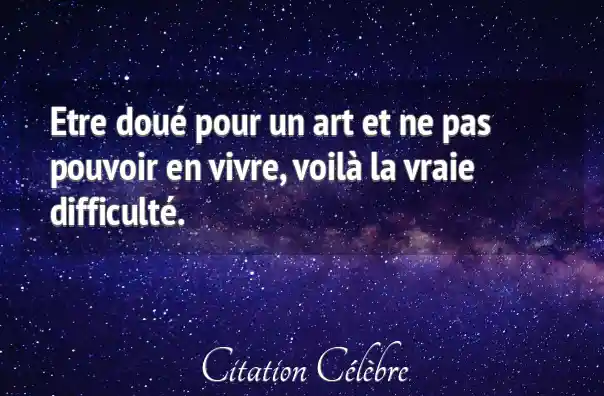 Etre doué pour un art et ne pas pouvoir en vivre, voilà la vraie difficulté.