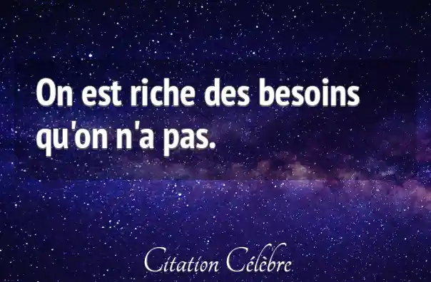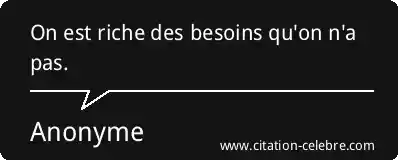On est riche des besoins qu'on n'a pas.
