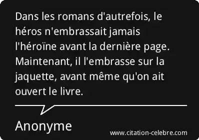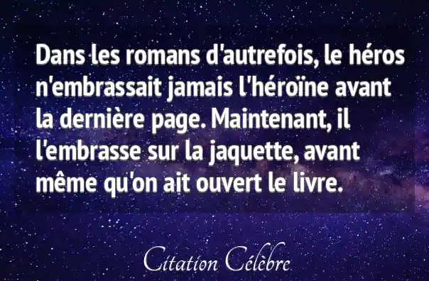 Dans les romans d'autrefois, le héros n'embrassait jamais l'héroïne avant la dernière page. Maintenant, il l'embrasse sur la jaquette, avant même qu'on ait ouvert le livre.