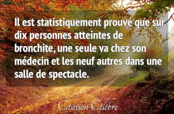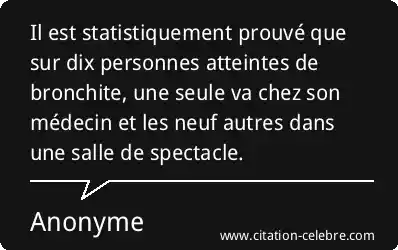 Il est statistiquement prouvé que sur dix personnes atteintes de bronchite, une seule va chez son médecin et les neuf autres dans une salle de spectacle.