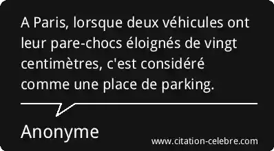 A Paris, lorsque deux véhicules ont leur pare-chocs éloignés de vingt centimètres, c'est considéré comme une place de parking.