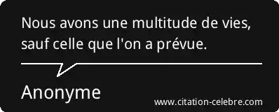 Nous avons une multitude de vies, sauf celle que l'on a prévue.