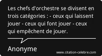 Les chefs d'orchestre se divisent en trois catégories : - ceux qui laissent jouer - ceux qui font jouer - ceux qui empêchent de jouer.