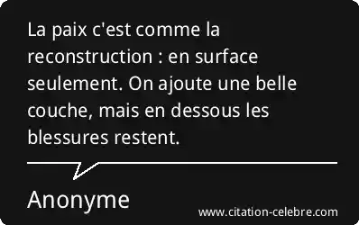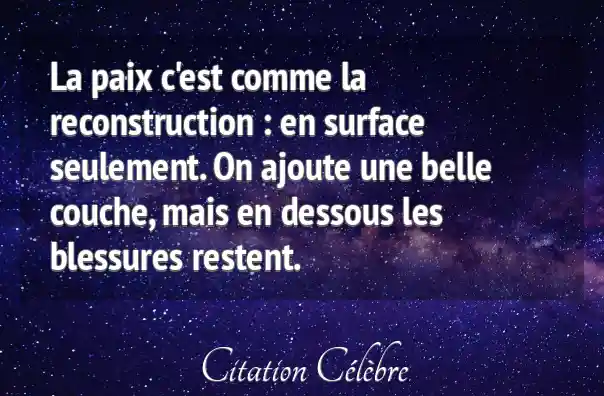 La paix c'est comme la reconstruction : en surface seulement. On ajoute une belle couche, mais en dessous les blessures restent.