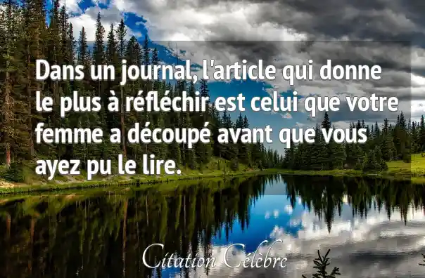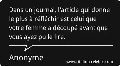 Dans un journal, l'article qui donne le plus à réfléchir est celui que votre femme a découpé avant que vous ayez pu le lire.