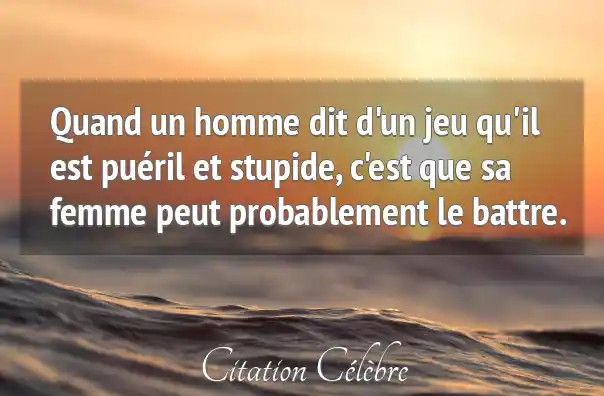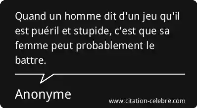 Quand un homme dit d'un jeu qu'il est puéril et stupide, c'est que sa femme peut probablement le battre.