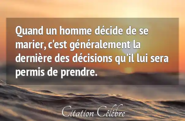 Quand un homme décide de se marier, c'est généralement la dernière des décisions qu'il lui sera permis de prendre.