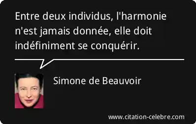 Entre deux individus, l'harmonie n'est jamais donnée, elle doit indéfiniment se conquérir.