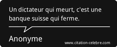 Un dictateur qui meurt, c'est une banque suisse qui ferme.