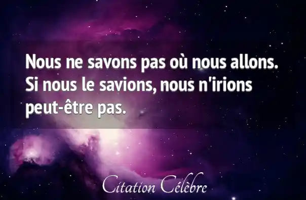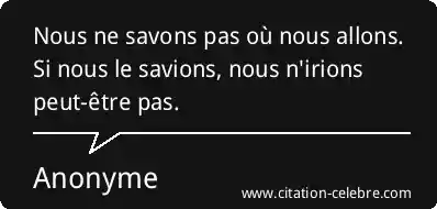 Nous ne savons pas où nous allons. Si nous le savions, nous n'irions peut-être pas.
