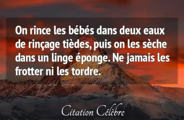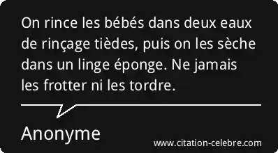On rince les bébés dans deux eaux de rinçage tièdes, puis on les sèche dans un linge éponge. Ne jamais les frotter ni les tordre.