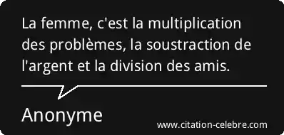 La femme, c'est la multiplication des problèmes, la soustraction de l'argent et la division des amis.