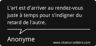 L'art est d'arriver au rendez-vous juste à temps pour s'indigner du retard de l'autre.