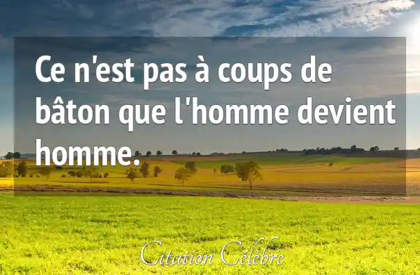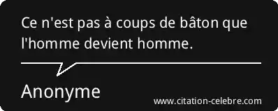 Ce n'est pas à coups de bâton que l'homme devient homme.