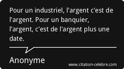 Pour un industriel, l'argent c'est de l'argent. Pour un banquier, l'argent, c'est de l'argent plus une date.