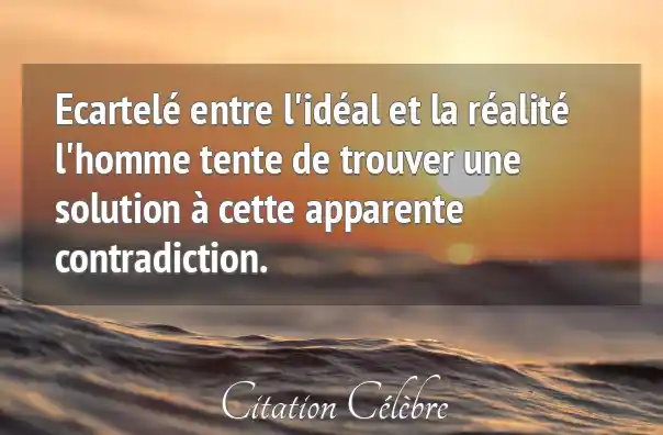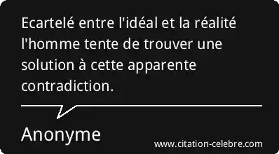 Citation Anonyme homme : Ecartelé entre l'idéal et la réalité l'homme tente de trouver...