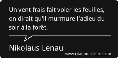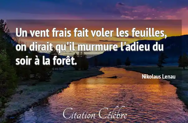 Un vent frais fait voler les feuilles, on dirait qu'il murmure l'adieu du soir à la forêt.