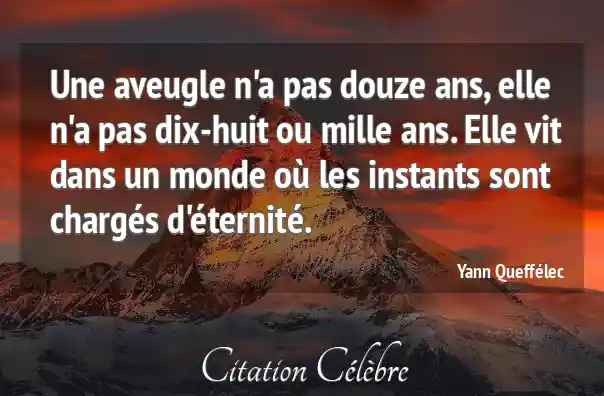 Une aveugle n'a pas douze ans, elle n'a pas dix-huit ou mille ans. Elle vit dans un monde où les instants sont chargés d'éternité.
