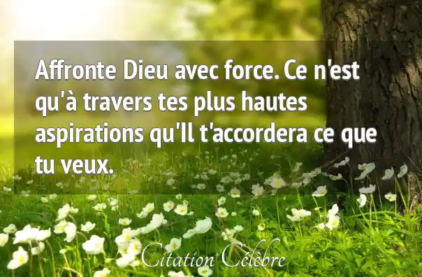 Affronte Dieu avec force. Ce n'est qu'à travers tes plus hautes aspirations qu'Il t'accordera ce que tu veux.