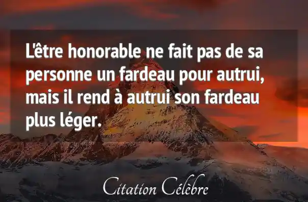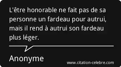 L'être honorable ne fait pas de sa personne un fardeau pour autrui, mais il rend à autrui son fardeau plus léger.