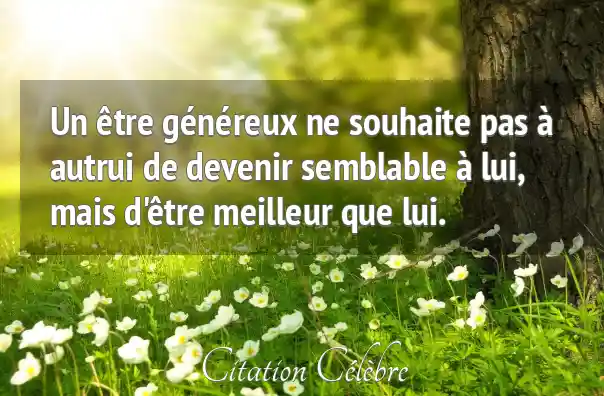 Un être généreux ne souhaite pas à autrui de devenir semblable à lui, mais d'être meilleur que lui.