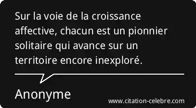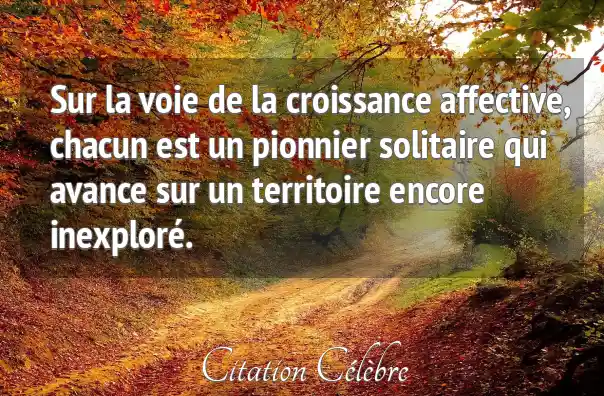 Sur la voie de la croissance affective, chacun est un pionnier solitaire qui avance sur un territoire encore inexploré.